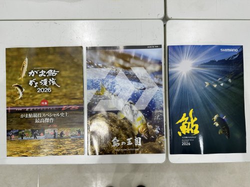 ダイワさんの2026鮎カタログ入荷いたしました!がまかつさん、シマノさんの鮎カタログは入荷済みでしたので、これで3社揃い踏みですね。各社、九頭竜川ドンピシャの鮎…