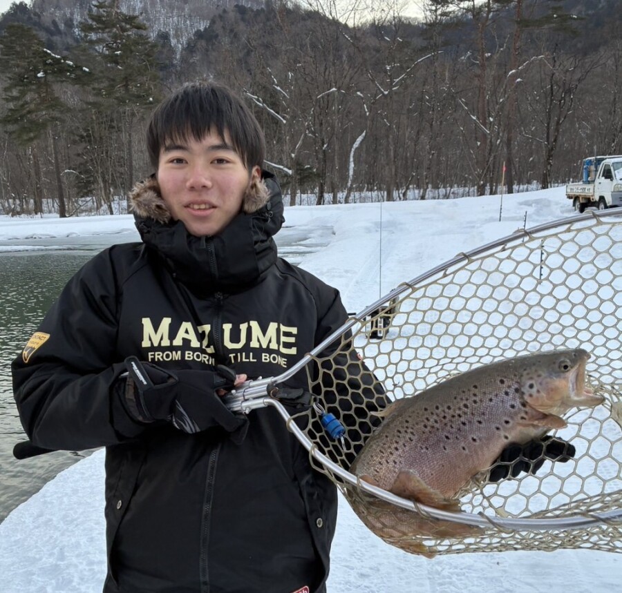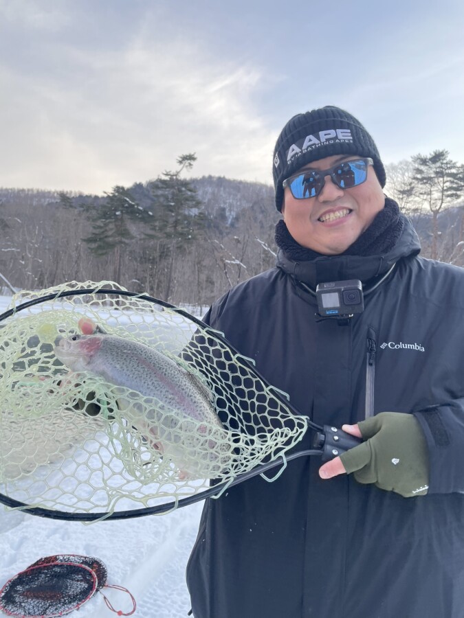 このあとスタッフ辻が追加でブラウントラウト、レインボートラウト×2を釣り上げるもオスの為リリース.