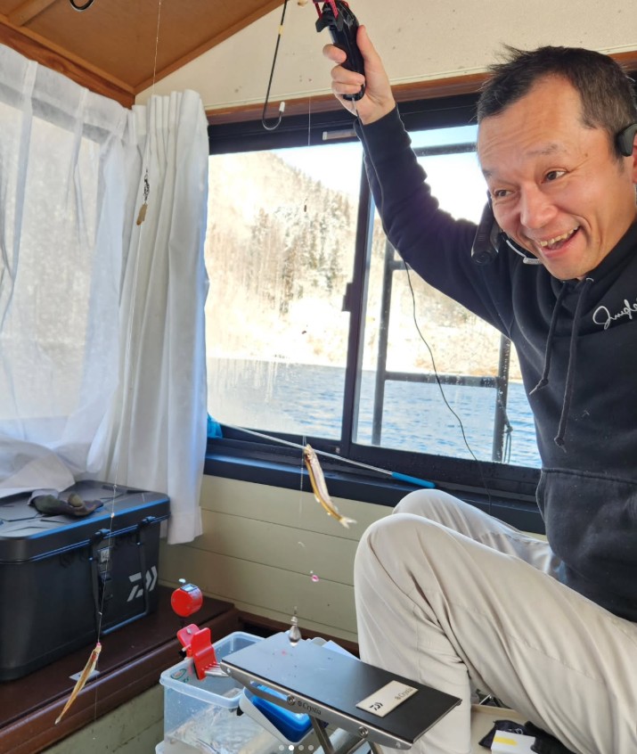 小屋の中は暖かくて、本当に冬なのか?と思うくらいの快適な環境での釣りです。(外の気温はマイナス8度)