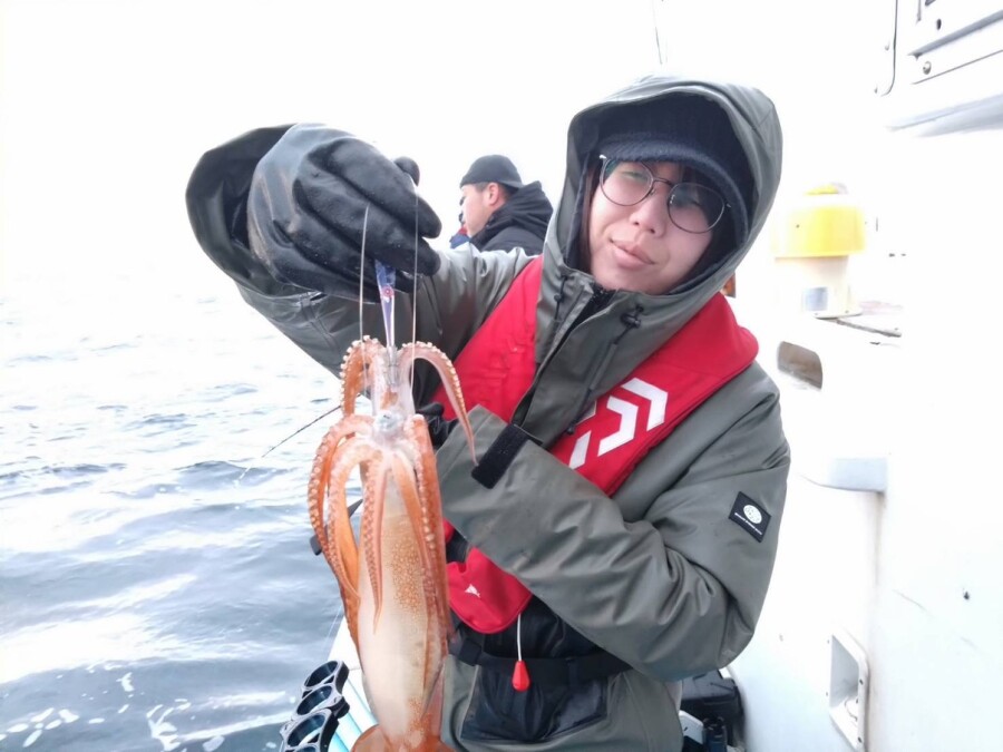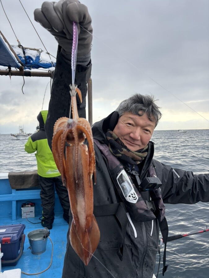 時折雪も降る厳しい状況でしたが、久しぶりのスルメイカの重量感を楽しめました。