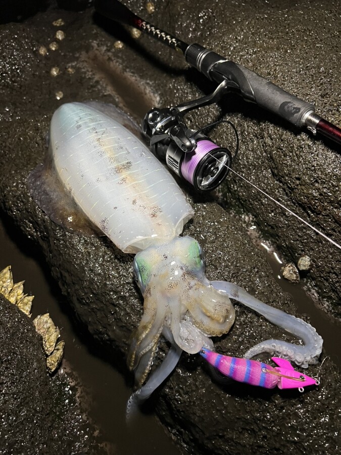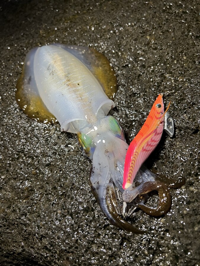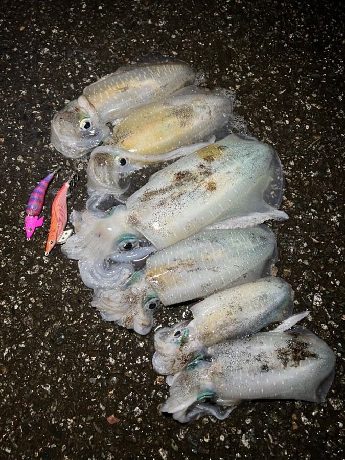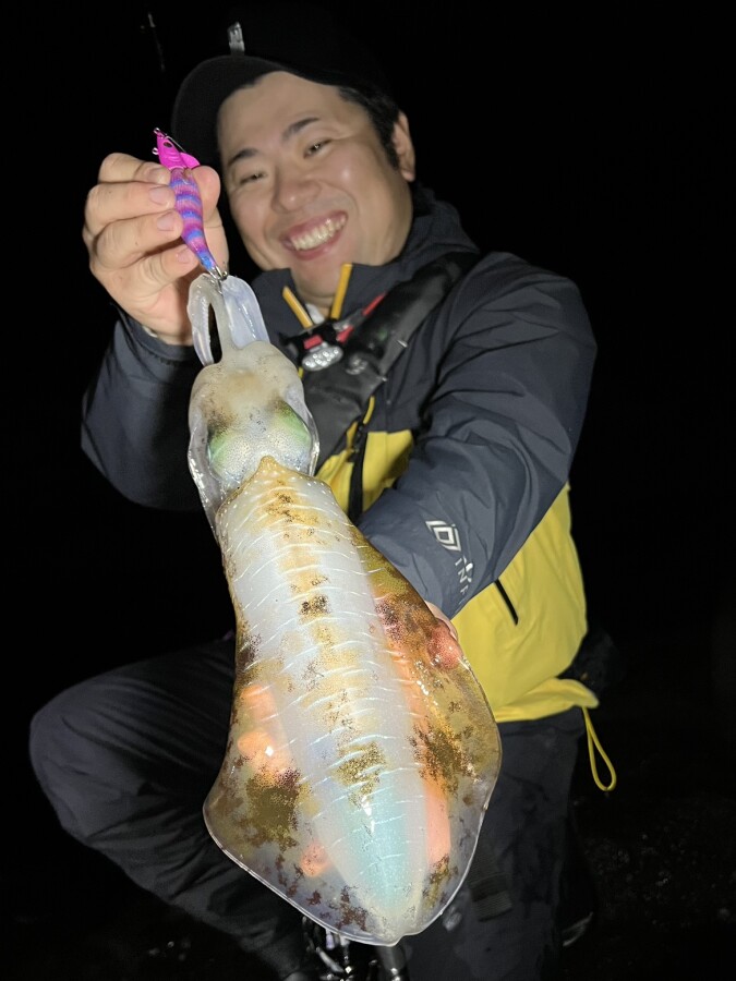 先日、お客様と仕事終わりに今好調のエギングに行ってきました!