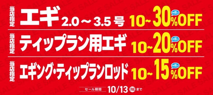 エギング用品セール→10/13(月)まで!