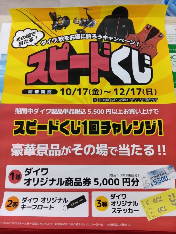 エギングセール開催中!! 11月3日までエギやロッドがお買い得となっております。