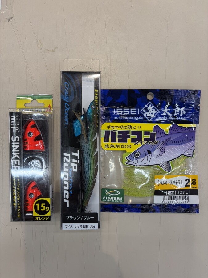 ちなみにこちらが使用したアイテムです ※エギは別カラーでした・・・