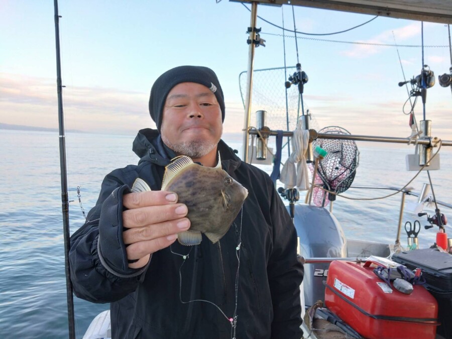 私は船でのカワハギ釣りは初めてでまったくわかりませんでしたが同じく初めてのはずのお客様がファーストHIT!