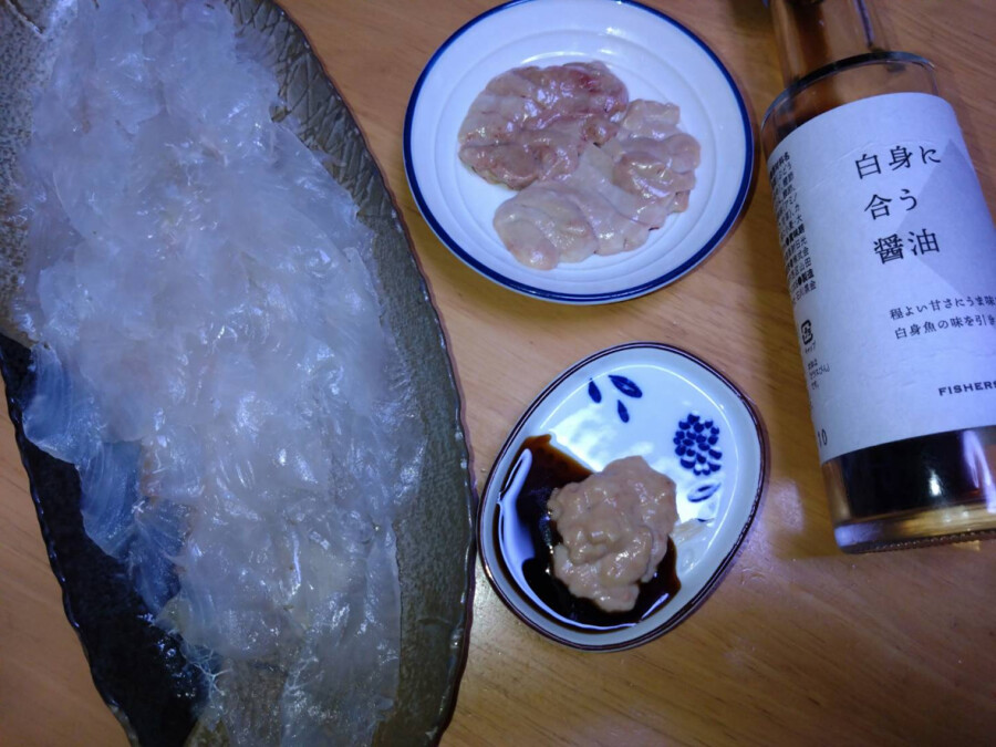カワハギはもちろんフィッシャーズオリジナル「白身に合う醤油」で肝醤油に(スタッフ樋口)