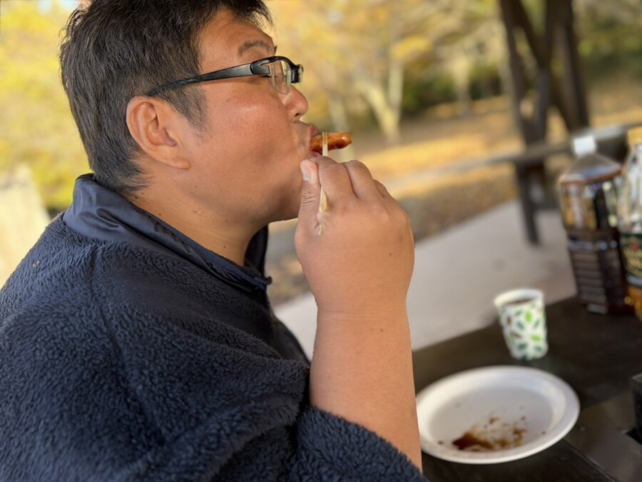 釣りの後は赤祖父池のほとりにあるゆーゆうランド花椿さん(温泉、食事等)でBBQセットを借りてバーベキュー&天ぷらパーティー。