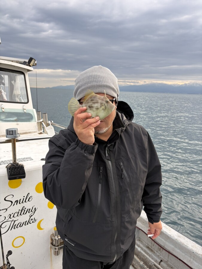今回カワハギ釣り初めてのお客様(どこかで見たことある)と、