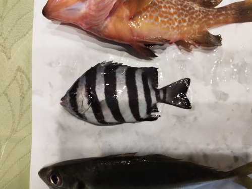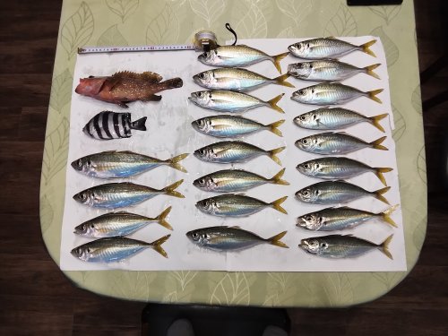 こだわりのアオイソメでサンバソウとカサゴが釣れた。キジハタはオキアミが好きらしい。マイクロサイズのチャリコとカサゴはリリースした。アオイソメの汁の集魚効果はバツグンだな~