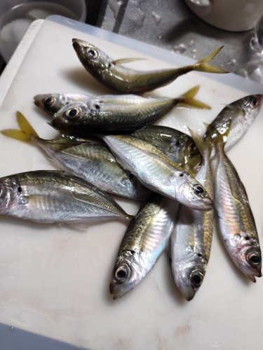 夕方5:30から夜8:00までで、良型のサバが30匹、10~15cmの豆アジが15匹、他にカタクチイワシも。他に釣り人は居ないのに、ほぼ入れ食いでした。