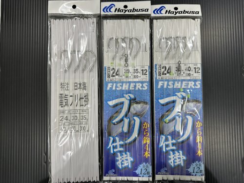 今期の福井沖船釣りでは丸々とした寒ブリが豊漁♪近隣遊漁船では「電気ブリ」が絶好釣!!それもあって専用仕掛けが品切れしておりましたが、急遽大量に仕入れ船コーナーに…