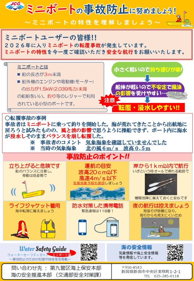 第九管区海上保安本部から釣り人の皆様、特にミニボートやカヤックで釣りを楽しまれる方々へのお願いです。