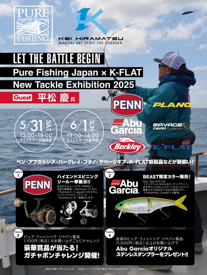 『“LET THE BATTLE BEGIN”Pure Fishing Japan × K-FLAT New Tackle Exhibition 2025』を開催します!!