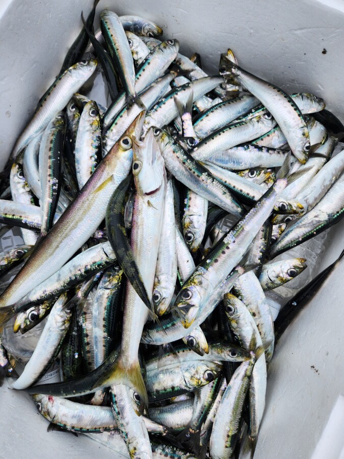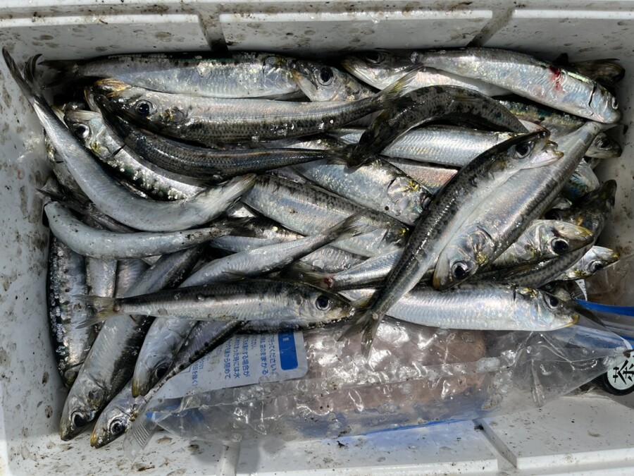 ベイトとなるカタクチイワシ、マイワシが沢山います。
