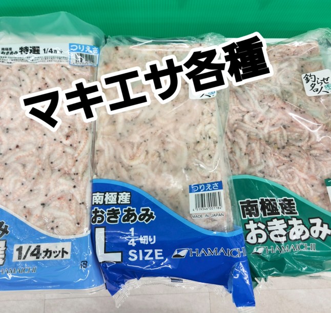 上越のブリ釣りならコレ!とまで言われる付けエサのイカやオキアミも豊富にご用意して、皆様のご来店をお待ちしております。