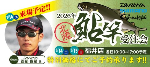 北陸の鮎ファンの皆様へ BIGイベントのお知らせです 緊急!!フィッシャーズ福井店鮎竿受注会に ダイワ 西部俊希 氏 来店予定 西部テスターは長良川 九…