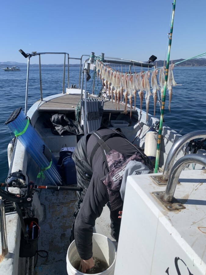 結果的には渋い日?でしたがスタッフ小林は数を伸ばしイカ干し職人してました