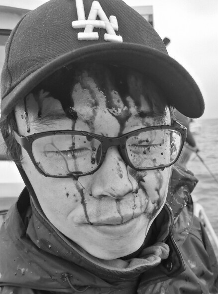 この日は風と波が強くなかなか厳しい状況...それにより宮田、笠木が船酔いによりダウン...