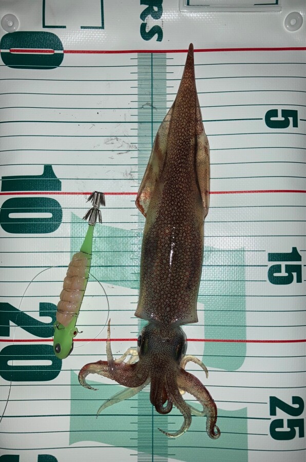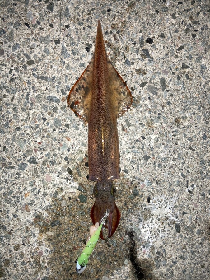 実は前日の夜に結構なサイズと数のヤリイカらしき群れを発見していたので期待を込めて。