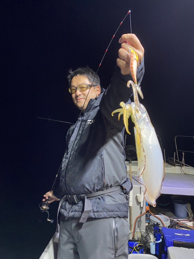 お客様にも大型アオリイカが釣れていました。後半になると船の周りはアオリイカだらけになり、見ているだけでも楽しかったです(^^♪