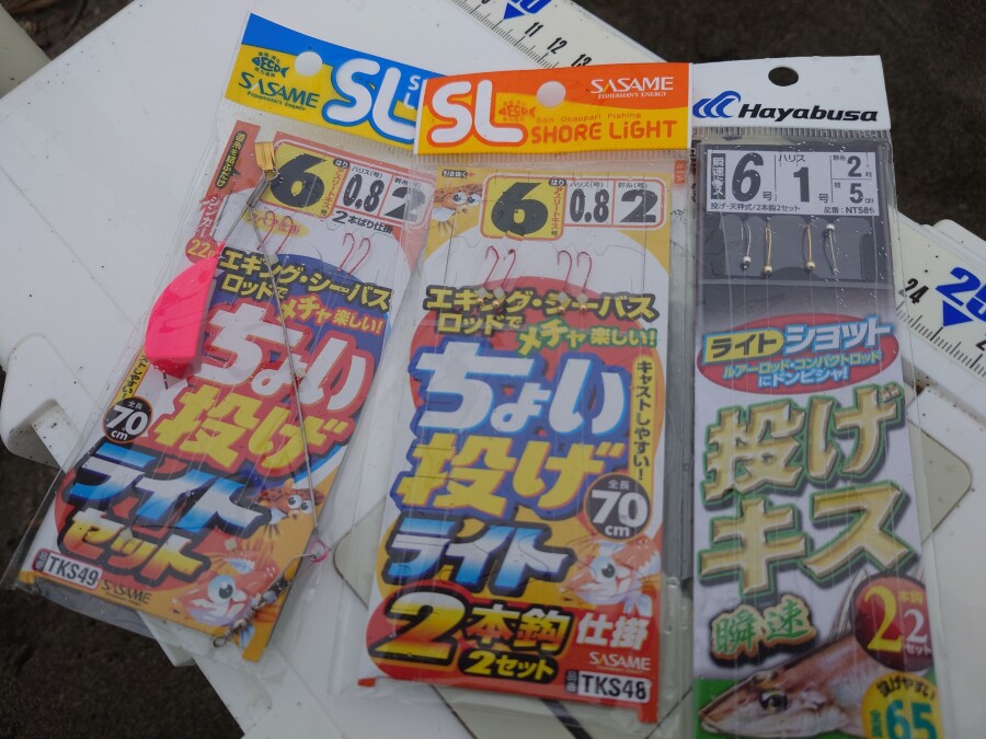 仕掛けはちょい投げ用の6号の2本鈎仕掛け。餌はジャリメ。