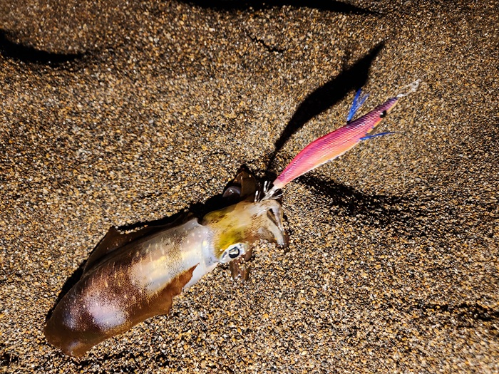 25日は上下浜周辺に夜明け前からサーフエギングに行ってきました。
