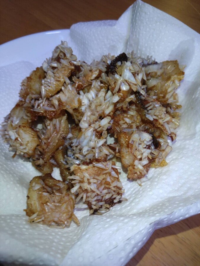 身が付いていないので鱗スナックというらしいです。(身は昆布〆に)