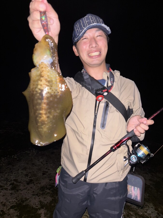ポイントに到着して、すぐにヤマシタエギ王K3.5号のボルカノロックでアオリイカゲット!!