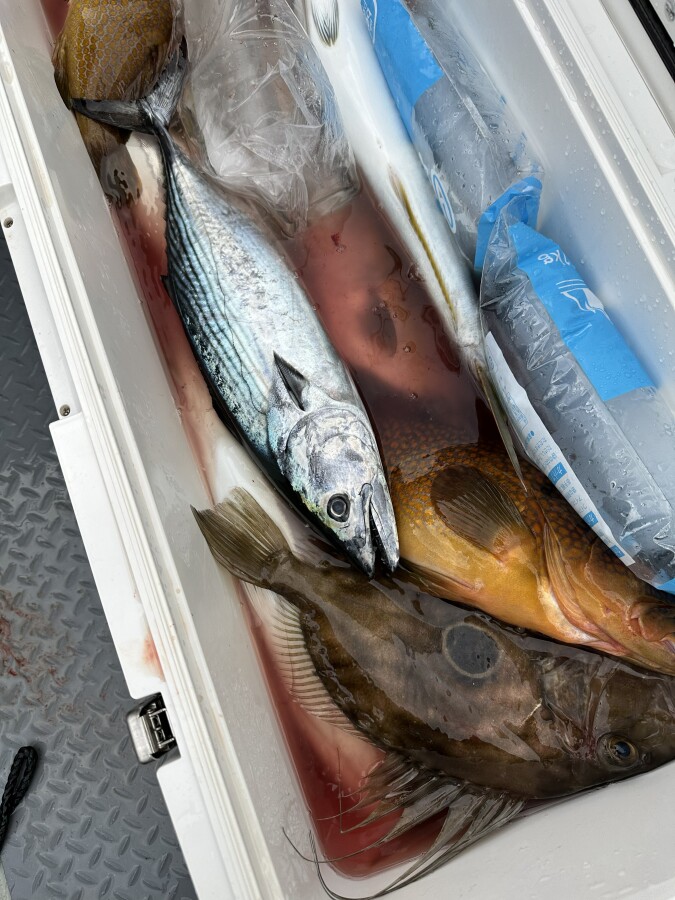 今年の秋は時化る日が多く、10月にいれた予約はことごとく流れ、11月に入りやっと今期1回目のたて釣りに行けました!当日はべた凪!晴天!緩い潮!?釣りはしやすくベイトも比較的簡単に付きますが、肝心のベイト捕食魚の活性がなかなか上がらない一日でした。それでも乗船のお客様はしっかり釣果を得られてました!ハガツオやマトウダイなど普段あまり釣れない魚種もGet!うらやましい!!