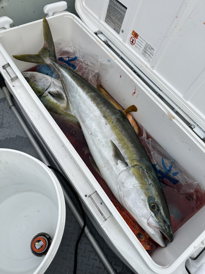 で吉田はというと、ハマチとキジハタをまずまず釣りましたけど、要所で良い手ごたえの青物?(ブリ?ヒラマサ?)を連続バラシ!タモを構えた藤田船長から『使えんなぁ(笑)』とありがたいお言葉をいただき、うなだれて帰路につきました…