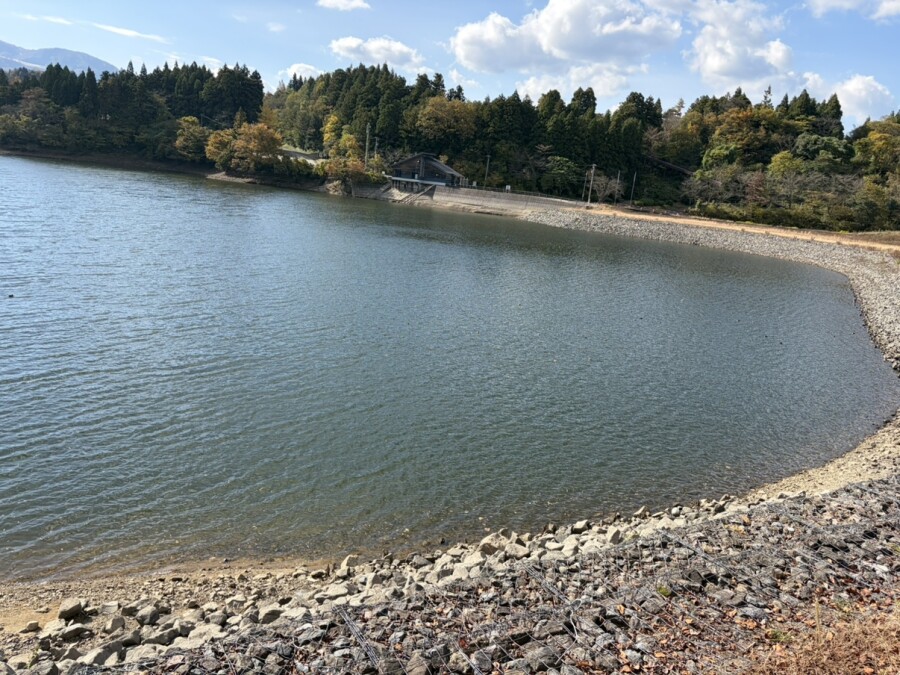 初めて見る大減水の中スタート。(上記は駐車場前の定番ポイント)