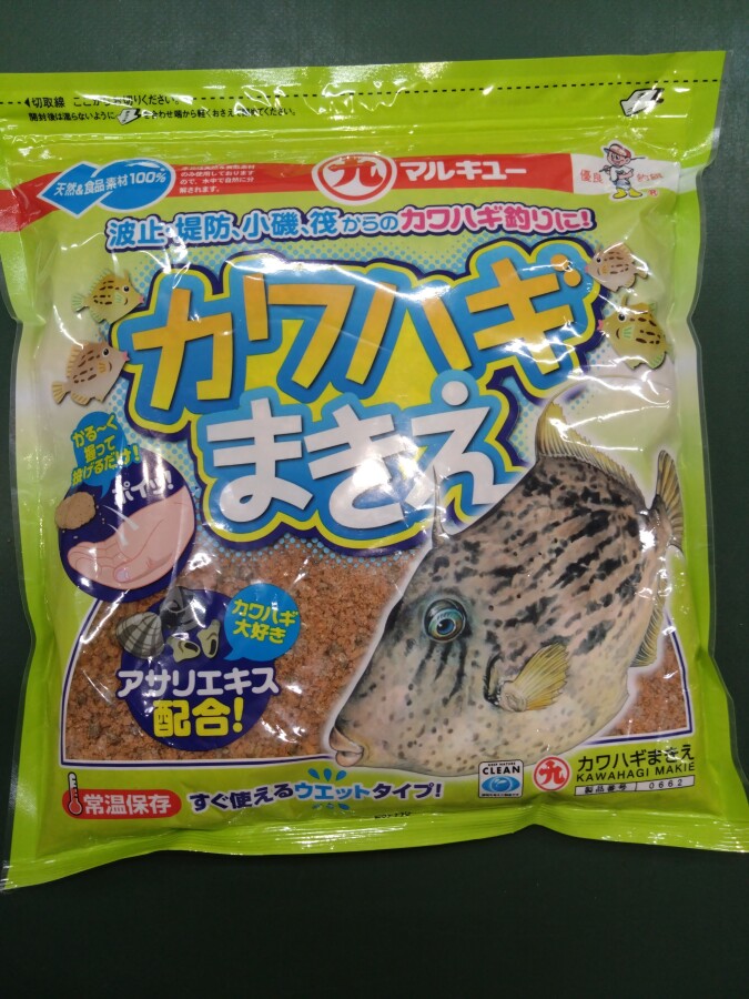 マルキューさんのカワハギ撒き餌をまいてカワハギを寄せます。
