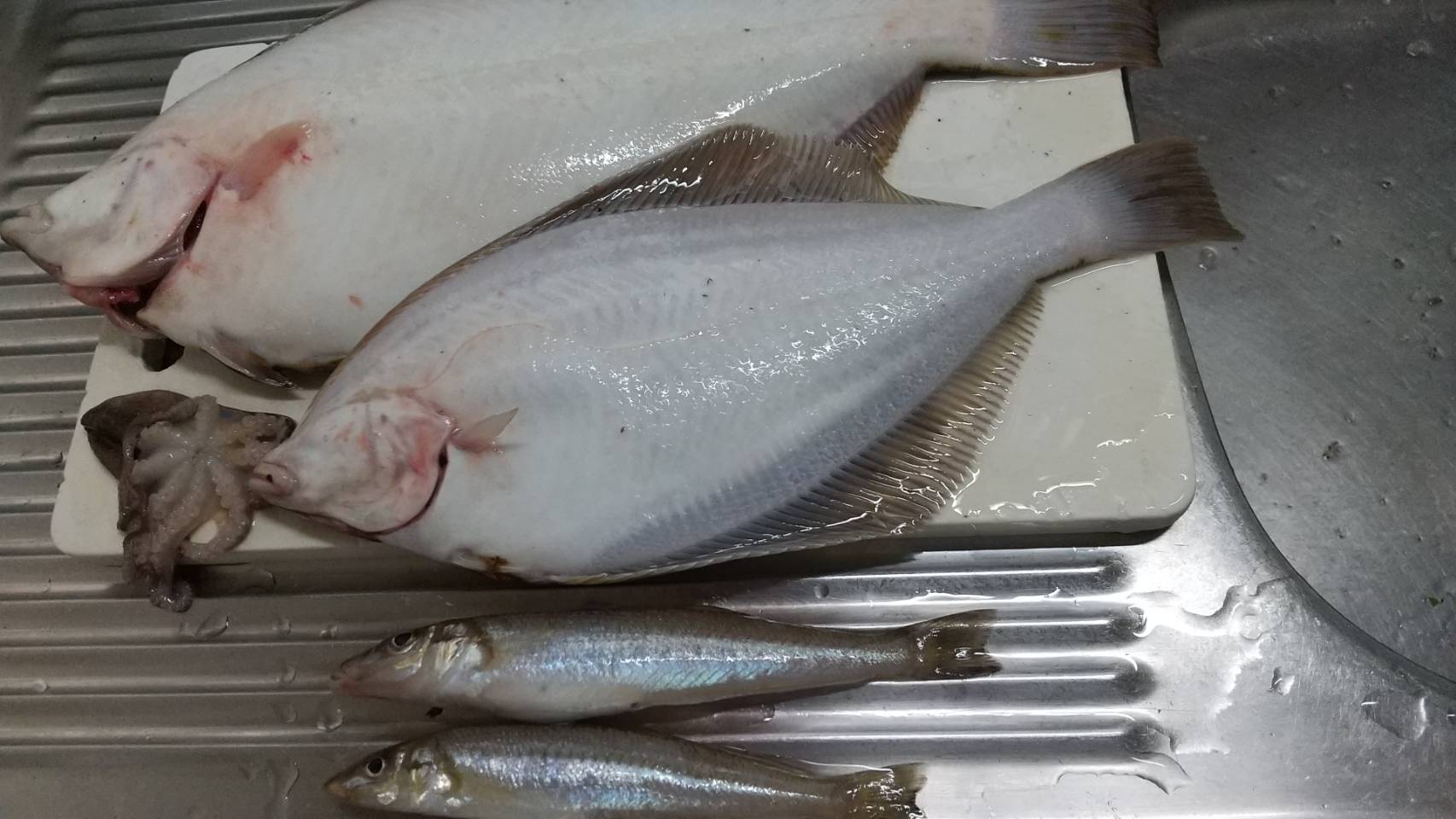 - 餌アオイソメ,針がま投げ7号3本針、L型天秤,ルアーロッド使用