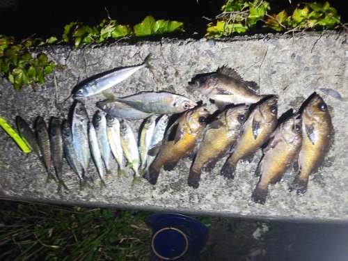 昨日と同じで、夕方はアジ、暗くなってからメバル狙い。