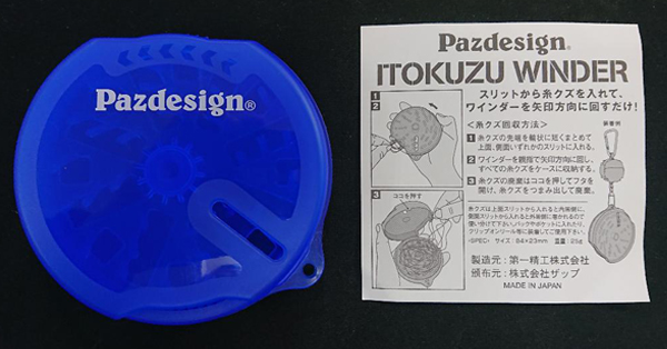 メーカー希望小売価格合計5,000円(税別)以上ご注文の方に、Pazdesignロゴ入り糸くずワインダー(非売品)をプレゼント!