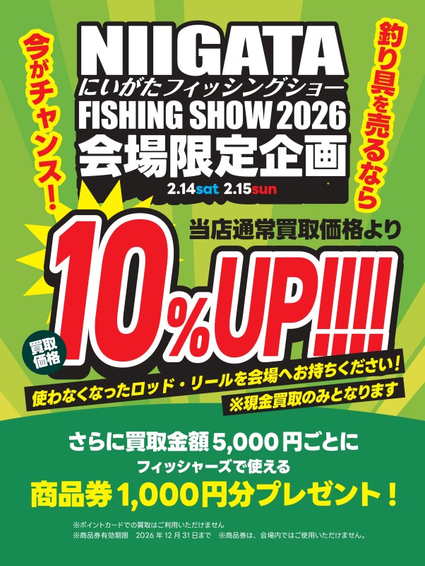 会場: 新潟フィッシングショー2026 「フィッシャーズ朱鷺メッセ店」(特価市)