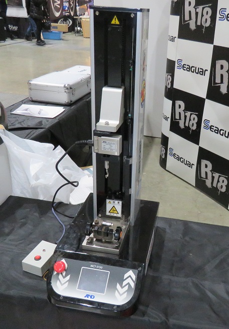『シーガー/クレハ合繊』 ブース内イベント【ノット強度計測】ノット強度を計測する機器を設置して、実際に計測が出来ます。