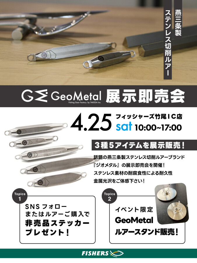 人気の3種のルアーに加え、イベント限定「ジオメタルルアースタンド」も販売!