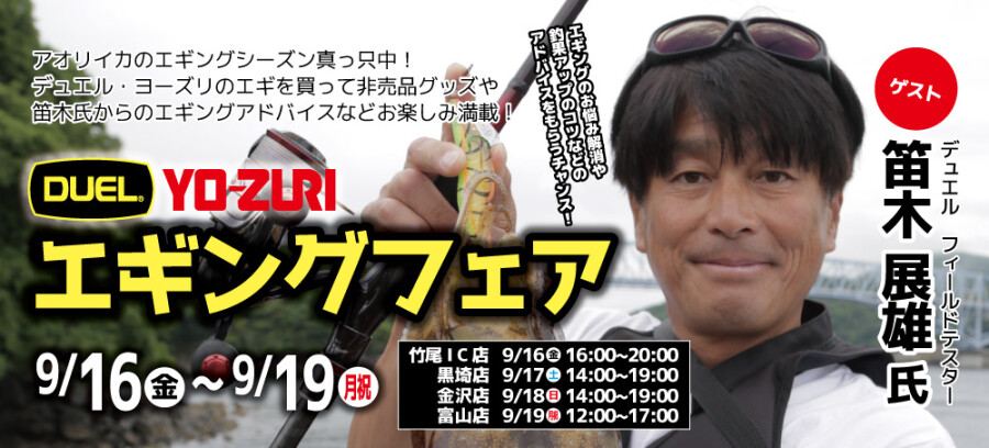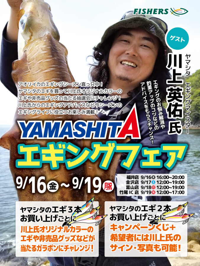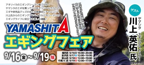 9月17日(土)はYAMASHITA エギングフェア、18日(日)はDUEL エギングフェアをフィッシャーズ金沢店にて開催します!
