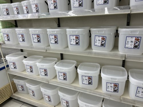コマセ角バケツが再入荷しました。フタ付で便利な角バケツは防災用にもいかがでしょうか。