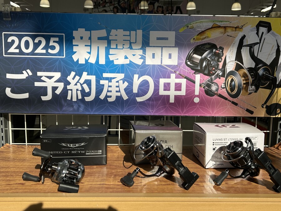 2025年、新製品の一部ですが、ロッド・リール共に展示しております