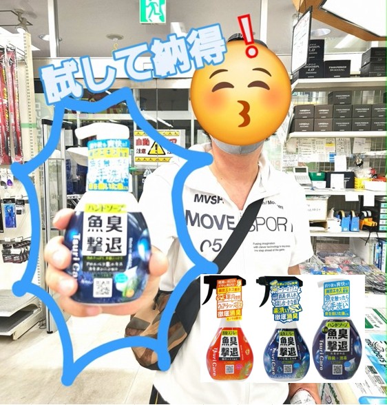 クーラーや水汲みバケツ、ロッドのグリップなどに、青の魚臭撃退洗浄スプレー(中)
